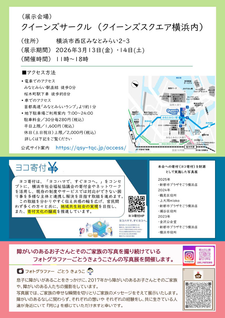 より多くの方に素敵なご家族の写真を見ていただく機会として、今年度はみなとみらいの「クイーンズサークル(クイーンズスクエア横浜内)」で開催します。